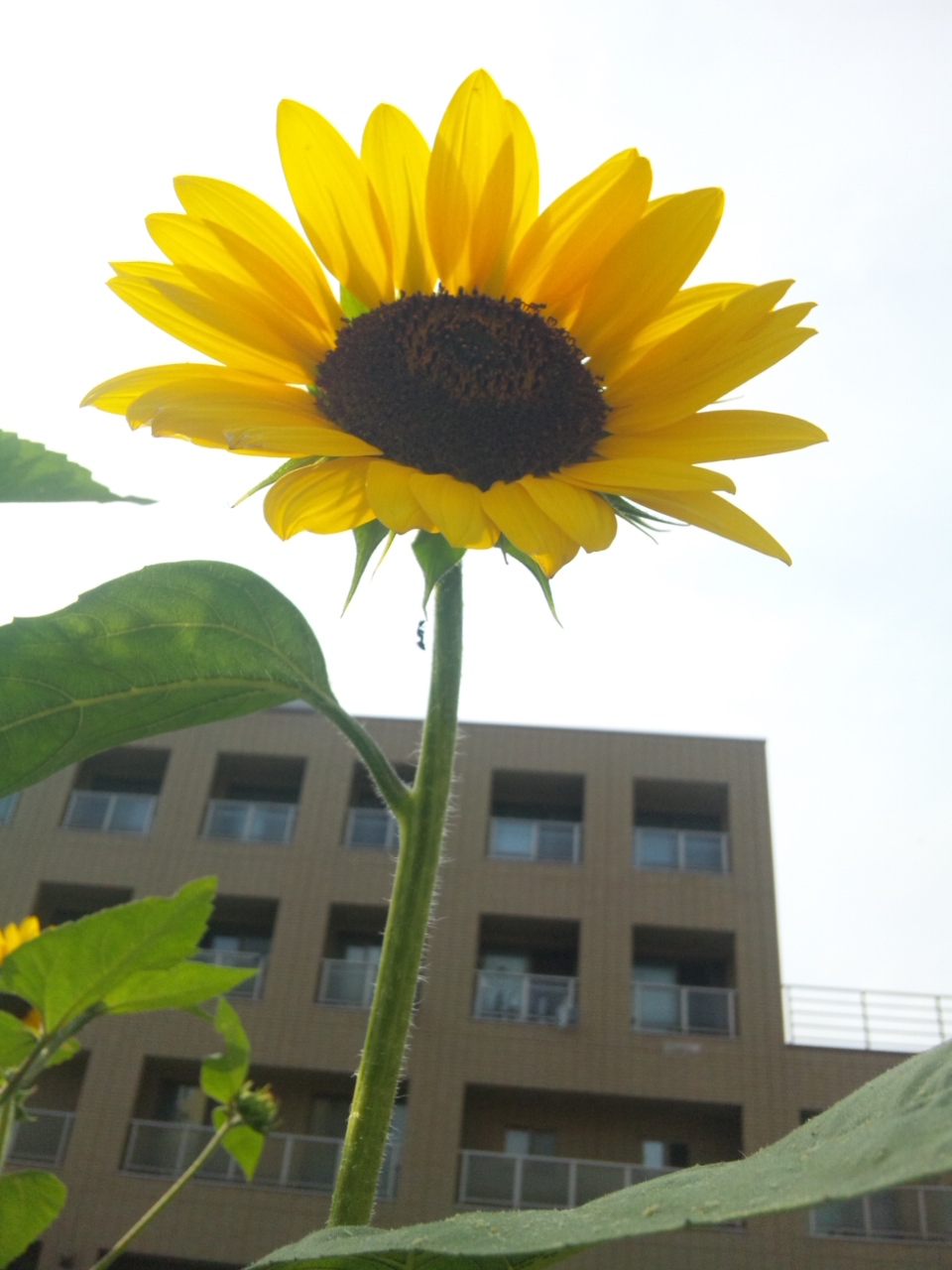 気づいたらひまわりが咲いていた!お日さまの方向いてなかったけれど…